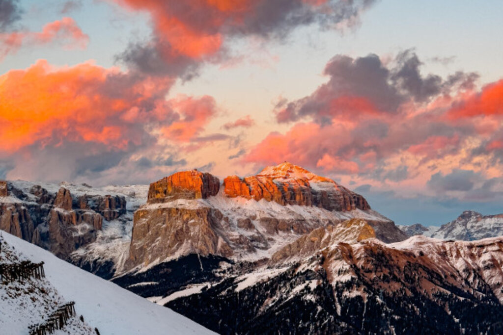- 17:30 Uhr – Bevor du es dir im Rifugio Crepa Neigra gemütlich machst, bewundere das Enrosadira-Phänomen, wenn die Berge bei Sonnenuntergang in Rosa- und Rottönen erstrahlen und der Himmel wunderschöne Nuancen zeigt